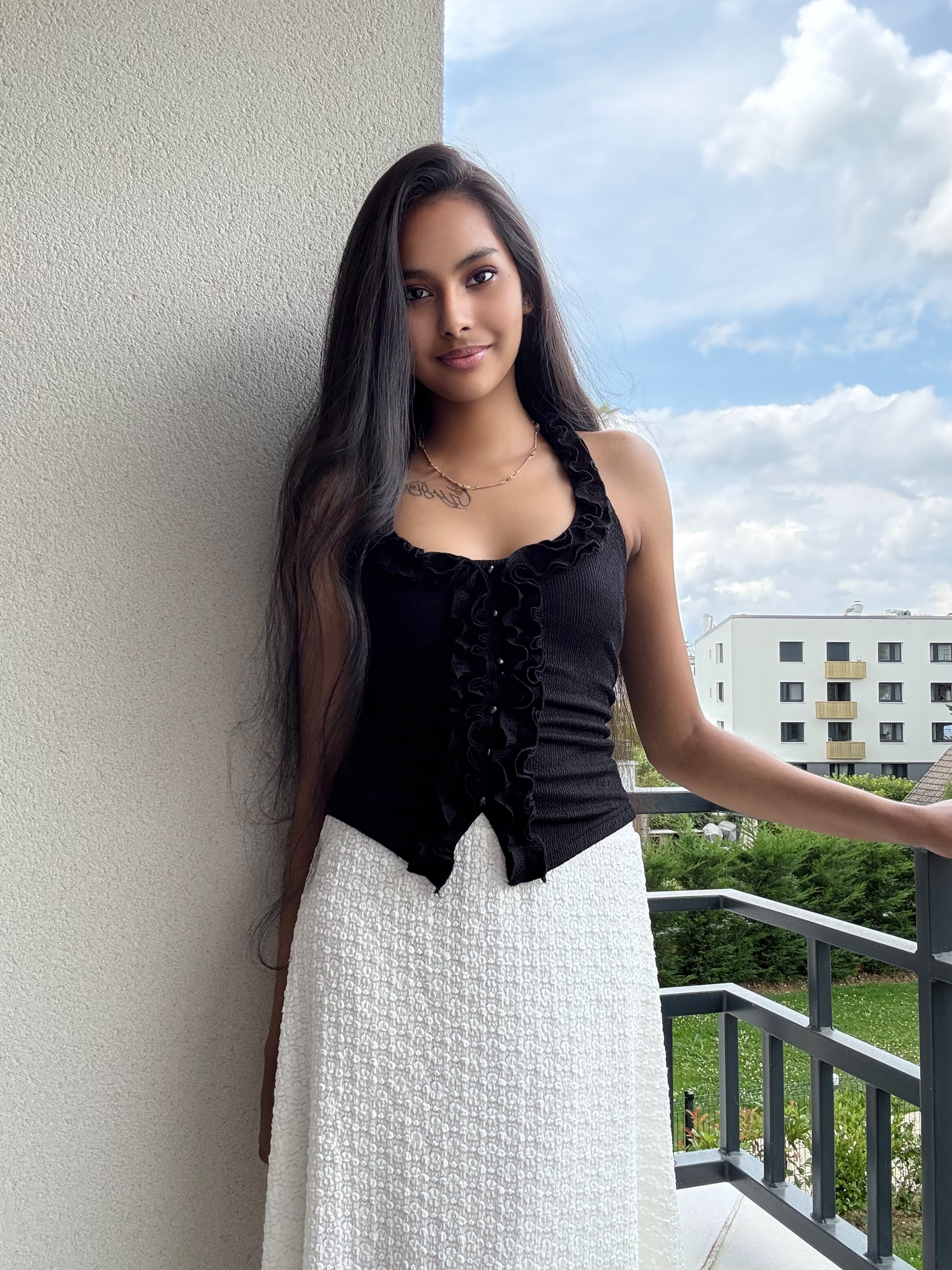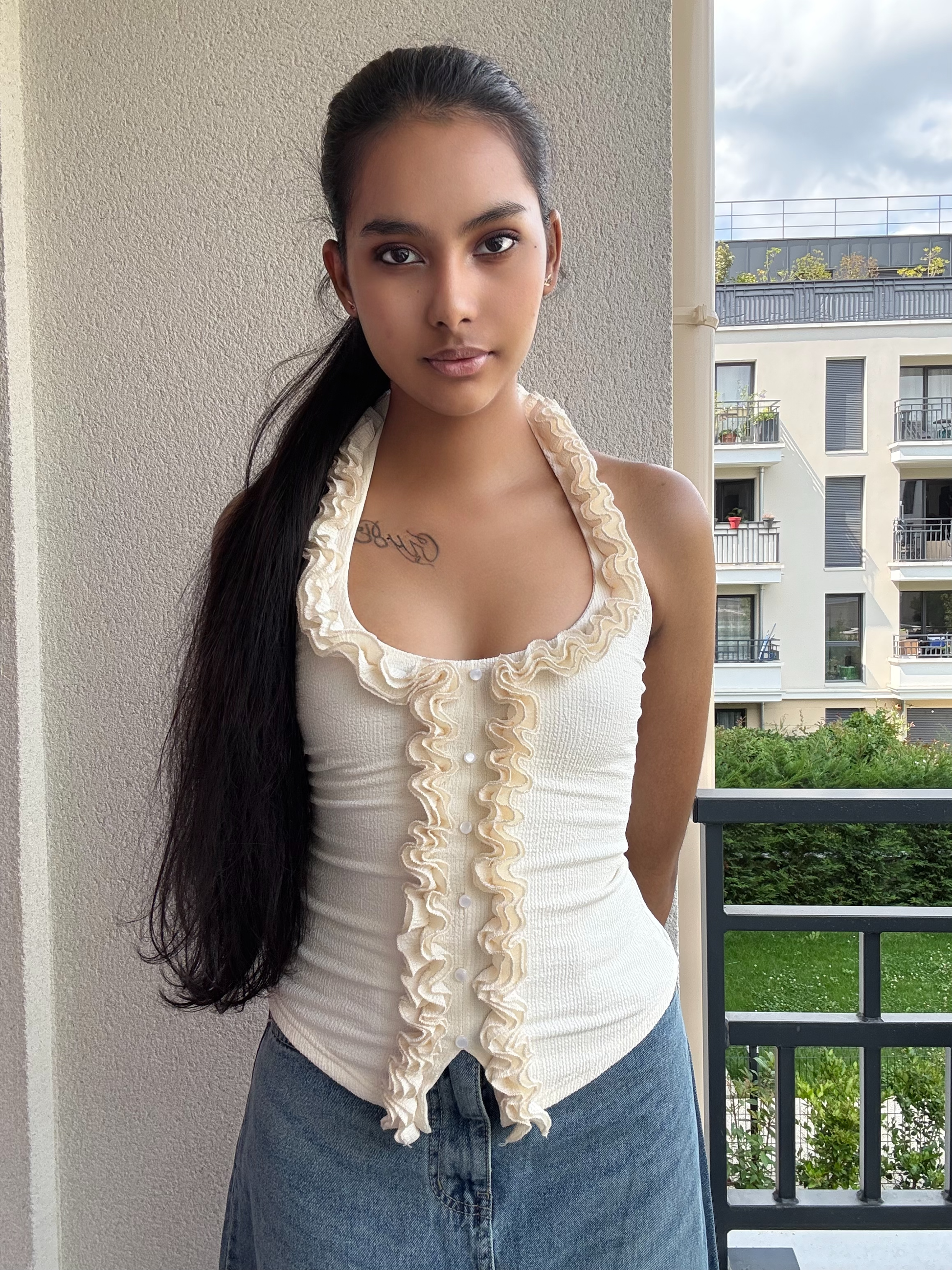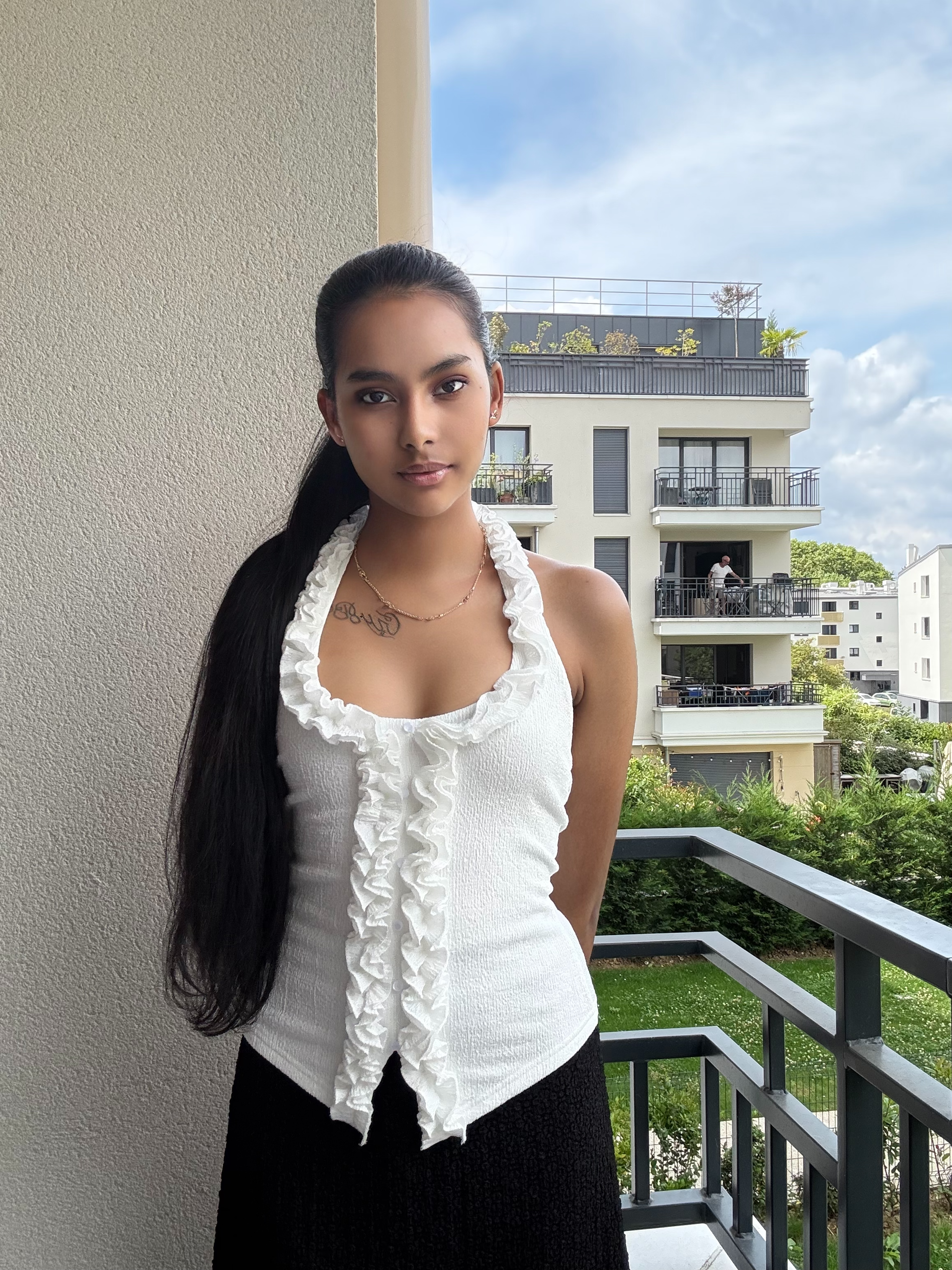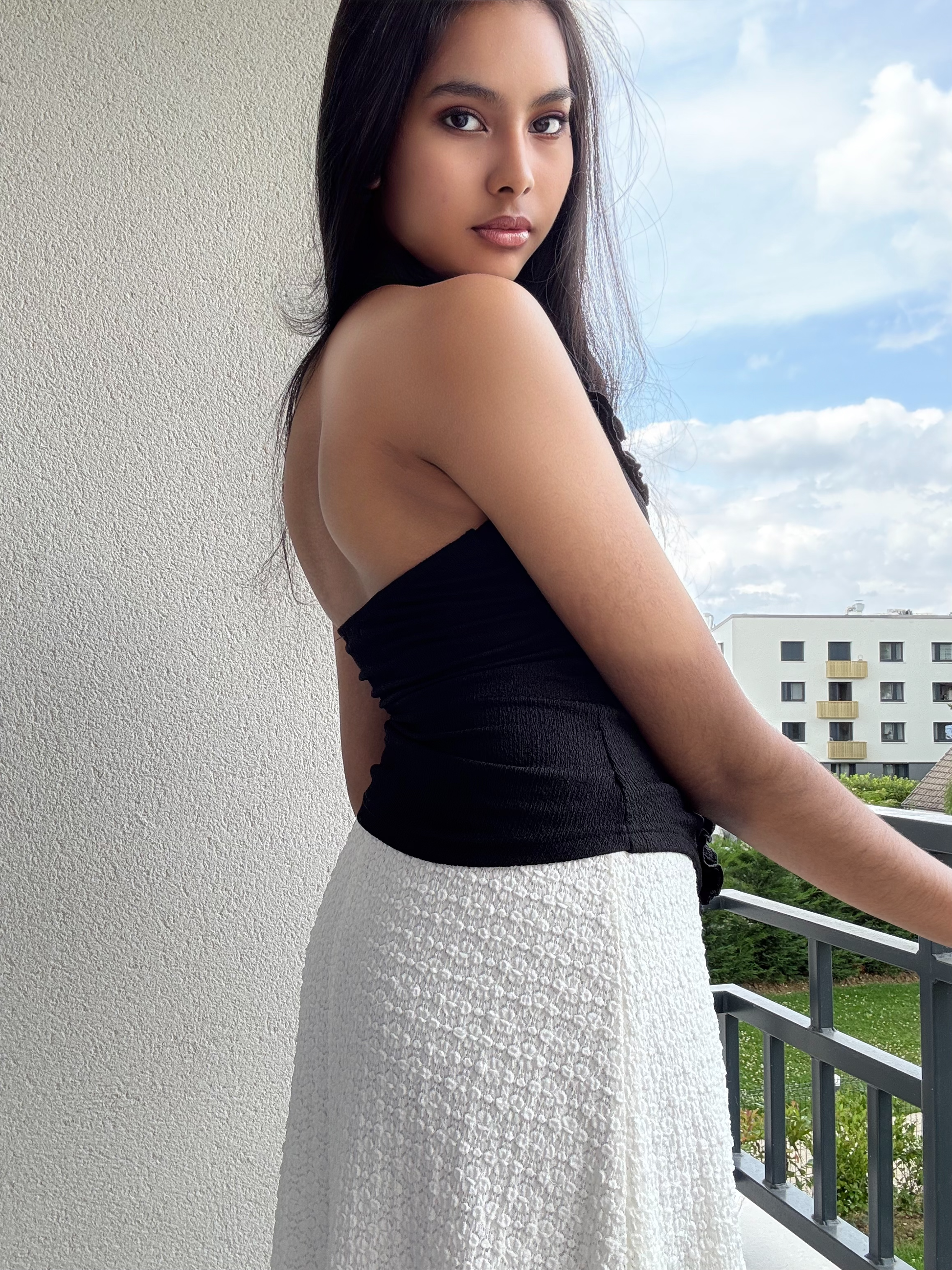 Natacha mesure 1m70 et porte une taille unique. Peut convenir du XS au M.